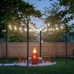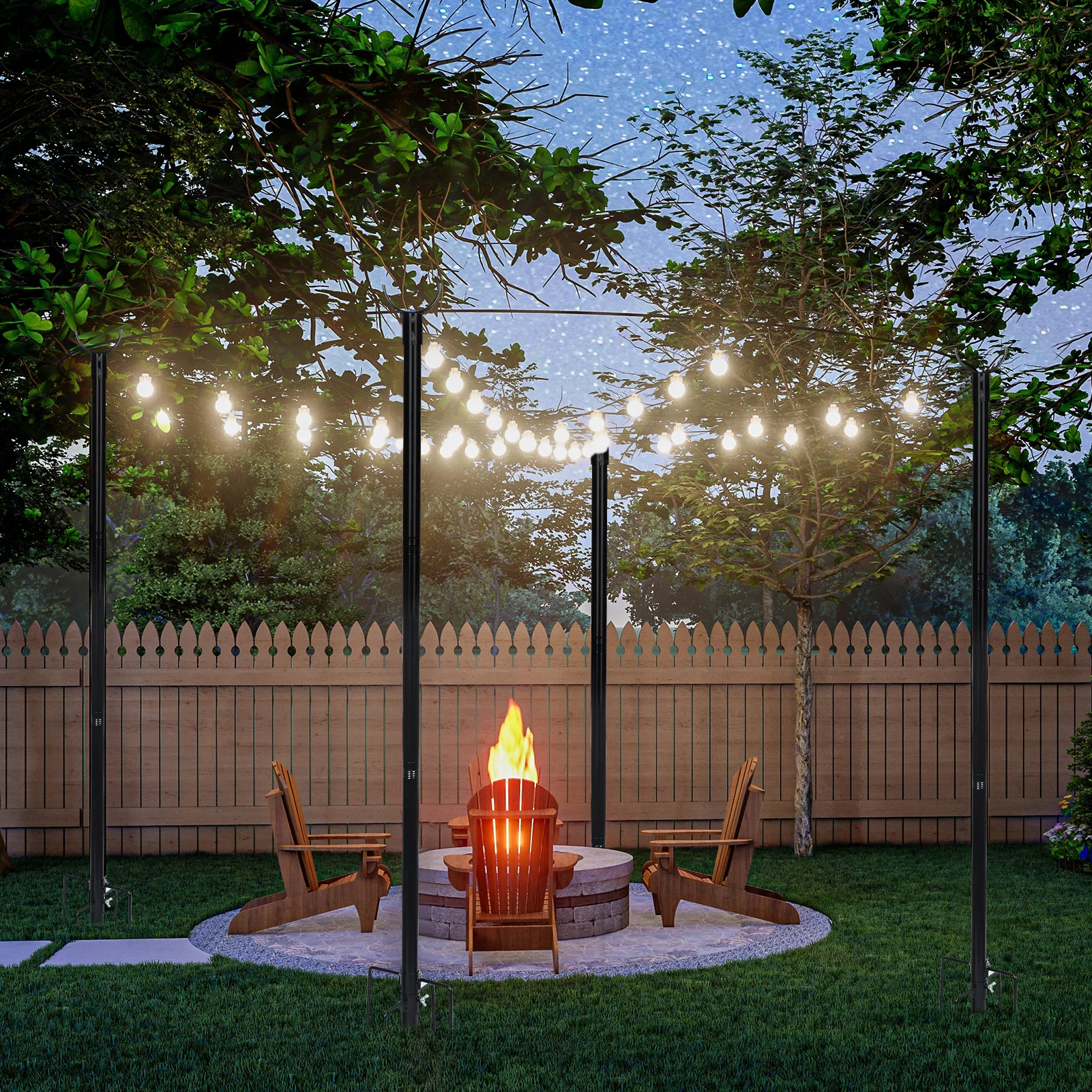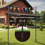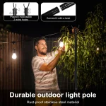 Out door String light poles are durable with 5 pronged base stong enough to put in the lawn or soil