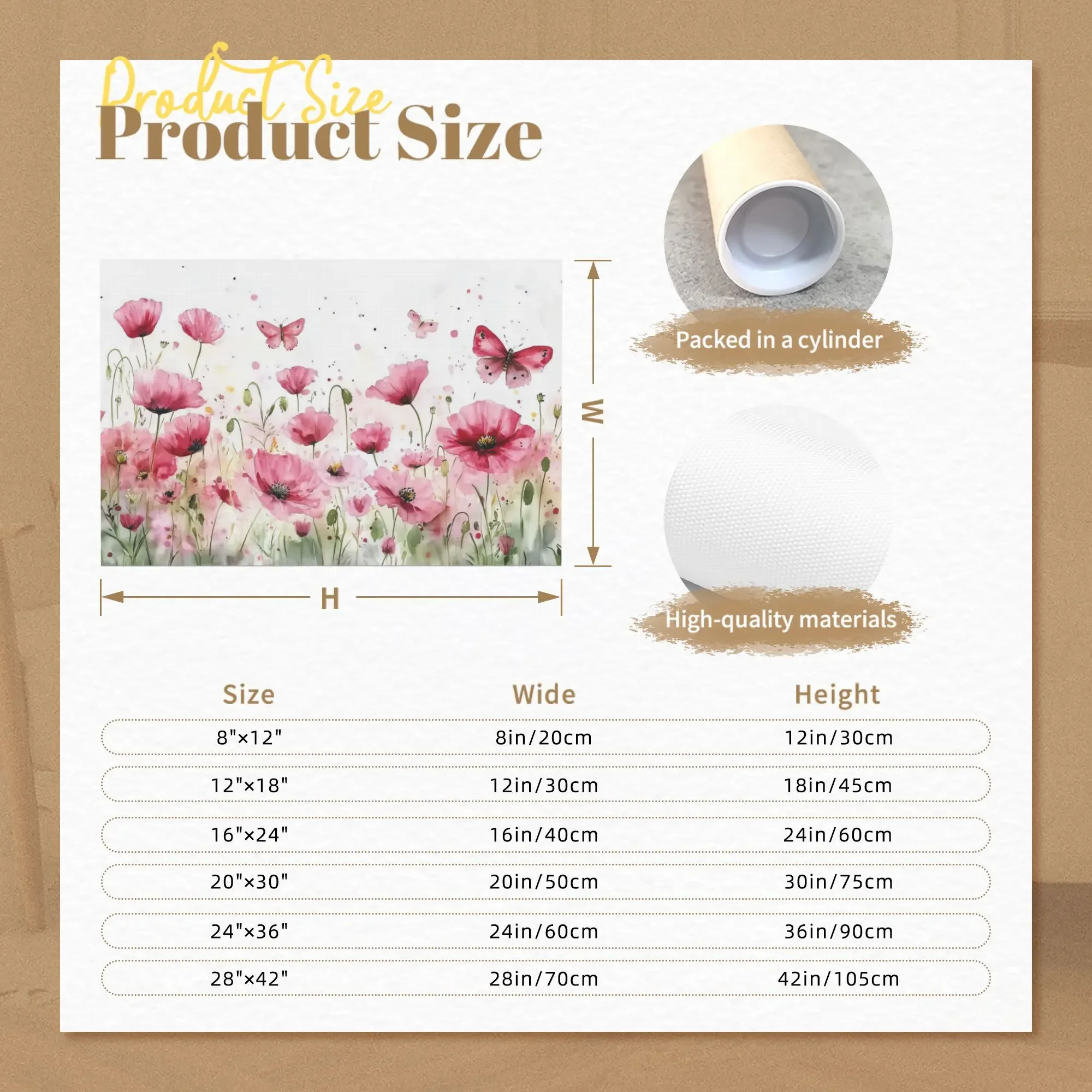 12 x18In, 8 x12In, 28 x42In, 36 x24In, 20 x30In, 16 x24In